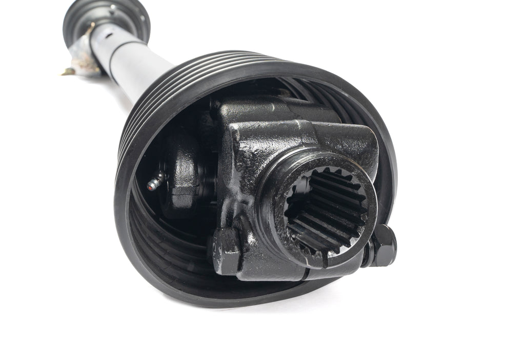 Constant Velocity (CV) Wide Angle Universal Joints. These CV joints ensure smooth machine operation across a wide range of motion. The universal joint allows for optimal input shaft positioning while still enabling flexible operator maneuverability. The CV joint maintains constant power by automatically canceling out the torque and speed variations typically seen in single Cardan-type universal joints.